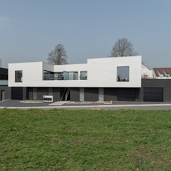 Deze acht appartementen zijn vervat in een kleinschalig energiezuinig project, een bewijs dat verdichting niet altijd grootschalig hoeft te zijn. Opvallend is de combinatie van de witte en zwarte verlijmde gevelsteen. De doordachte positionering van de verbinding van de materialen zorgt voor een aangename spanning in de gevelvlakken. Omdat we ook altijd oog hebben voor het grotere kader staat deze nieuwbouw in volmaakte harmonie met zijn omgeving.